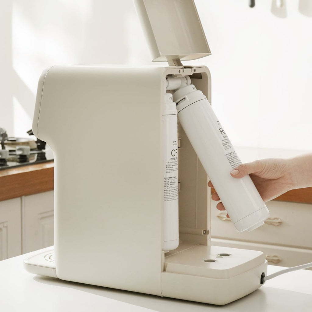 產品透過反滲透 (RO) 及活性碳 (CF) 濾芯,高效將未過濾的清水由原水箱過濾完帶到內置於機身內的淨水箱,加上內置 UV 燈抑制細菌滋生,以達至供應放心飲用的食水。產品同時備有即時加熱功能,切合不同飲用需要。