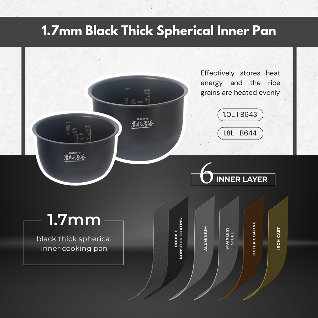 | 內鍋 | 黑色厚身球形內鍋(1.7 mm) |