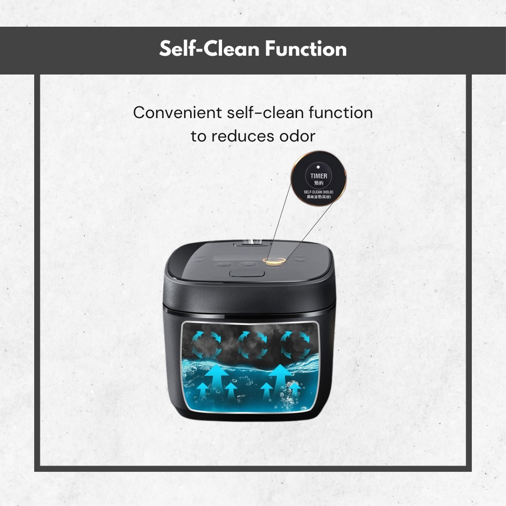 內置蒸煮功能及慢煮模式,並配備自動清潔程式,提升使用便利性。平面頂部設計、無蒸氣外排結構及黑色厚身球形內鍋,進一步提升效能並方便清潔。保溫功能最長可達 24 小時,並附有可直立式飯勺,日常使用更便利。