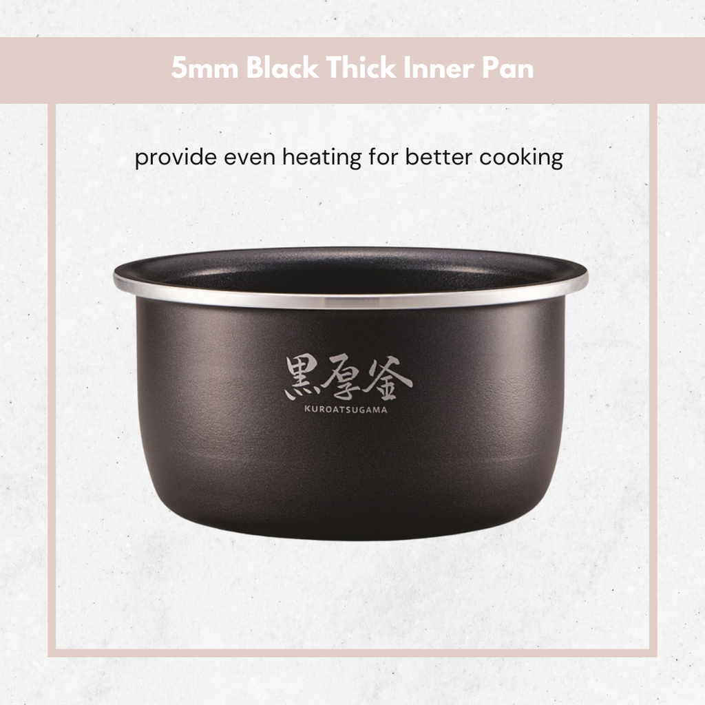 - 5mm 黑金鋼厚釜內鍋,帶來均勻而高效的導熱表現