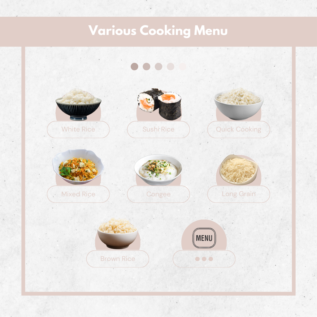 - 多種菜單設定:白米、快速、長米、什錦飯、壽司飯、粥及糙米