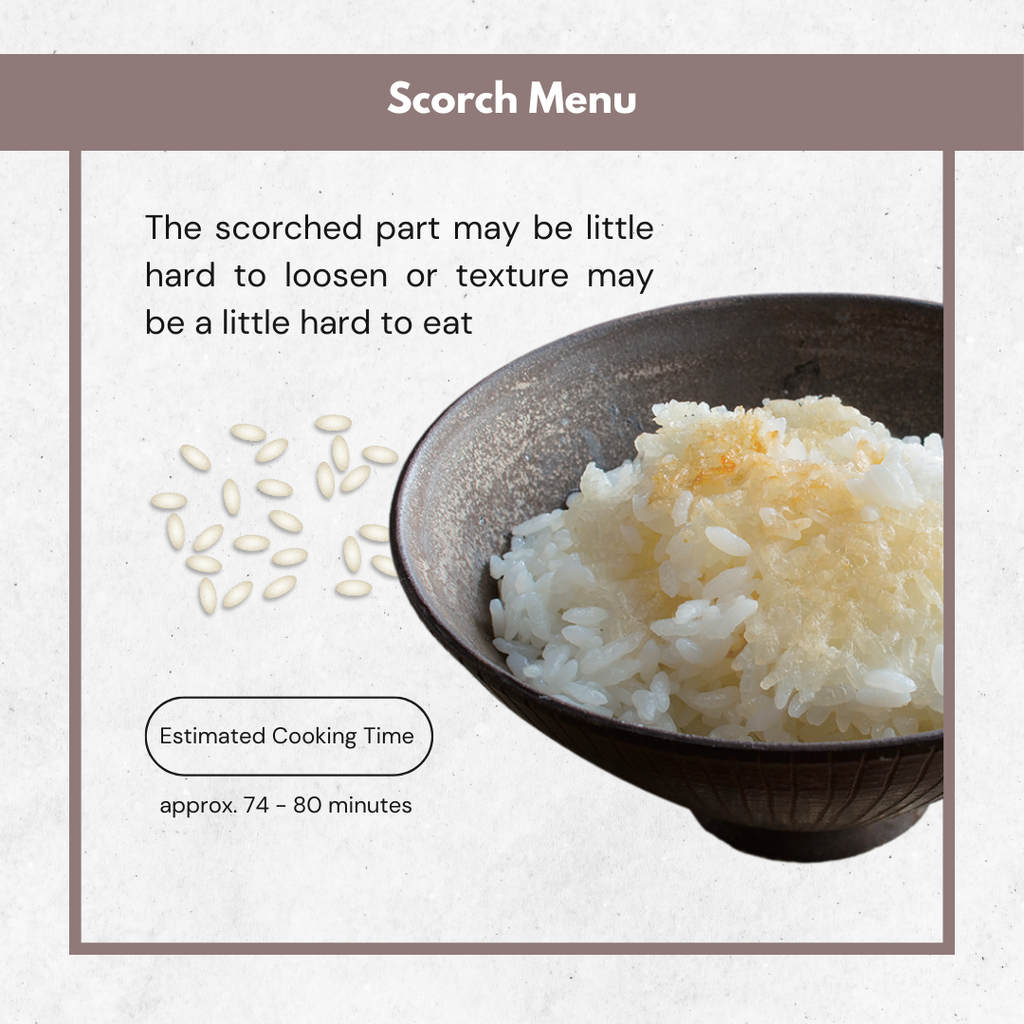 - 焦香飯模式可輕微烘烤底層米飯,製作香脆飯焦