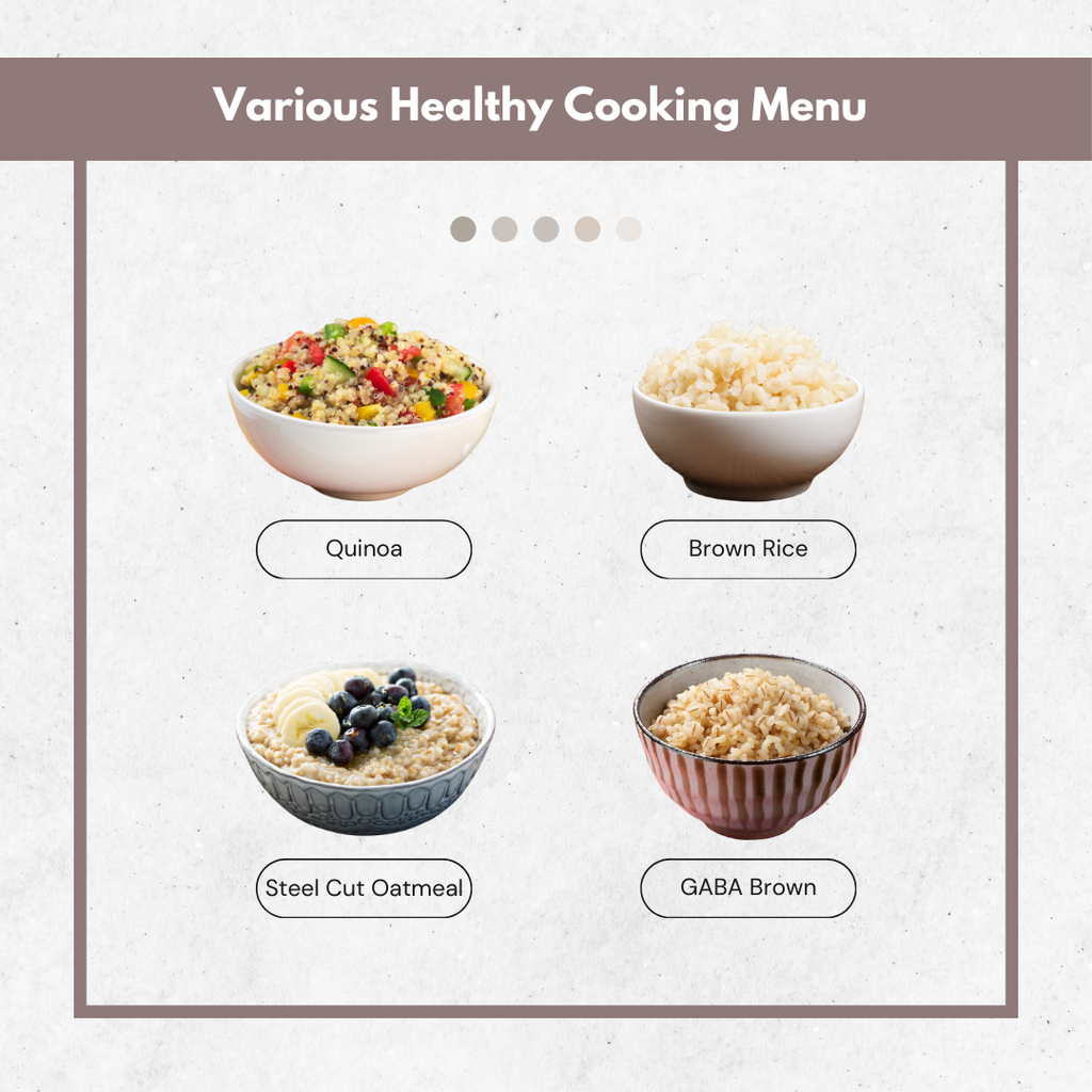 - 提供多種白米、糙米、藜麥及燕麥烹調選單