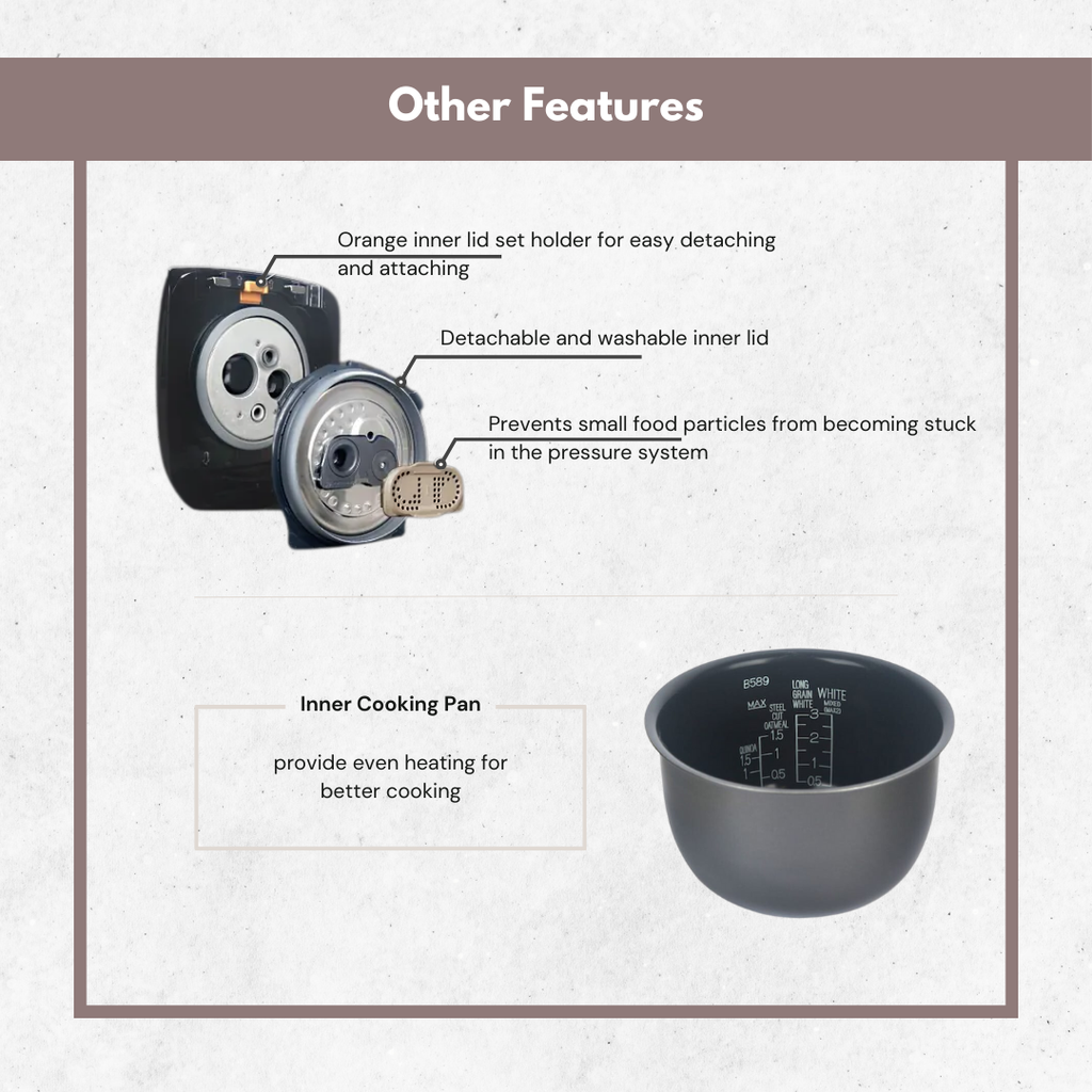 - 多段壓力技術,帶來 3 種米飯口感選擇